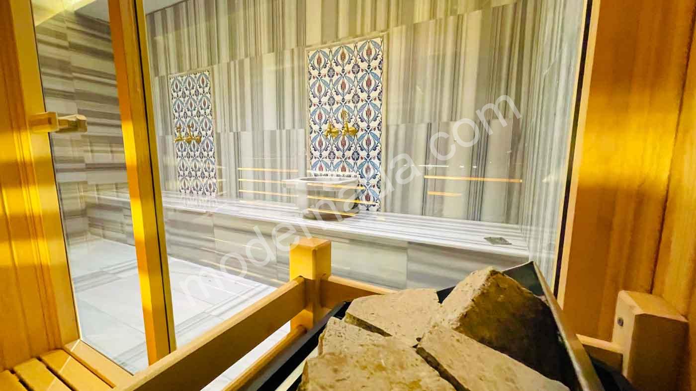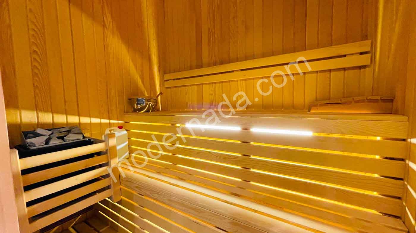 2 yatak odası, WC & banyo, hamam ve sauna alanı.